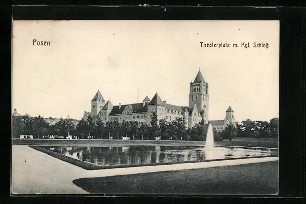 AK Posen, Theaterplatz mit Königlichem Schloss