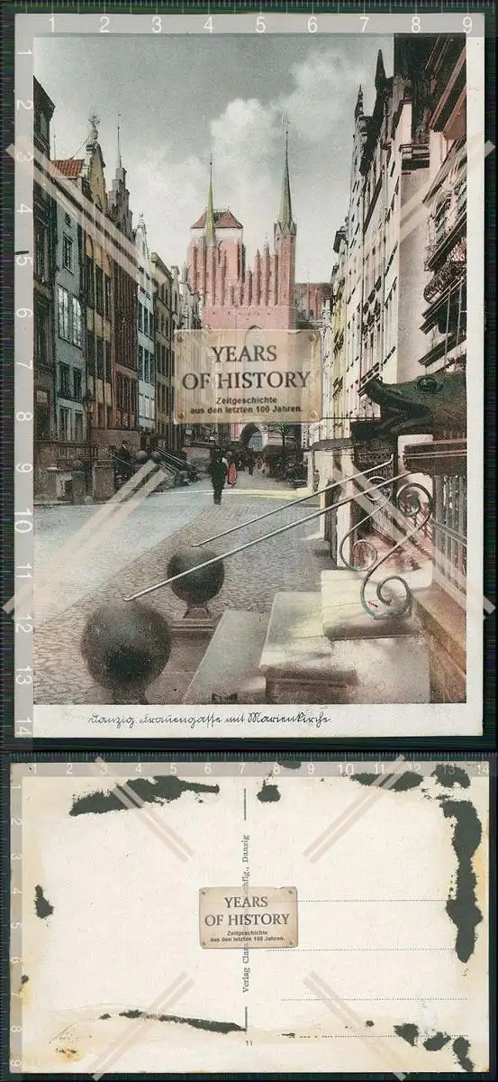 AK Postkarte Gdańsk Danzig Frauengasse mit St. Marienkirche Wohnhäuser 1933