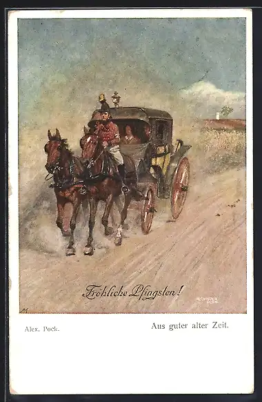 AK Postkutsche auf einer Landstrasse, Pfingstgruss