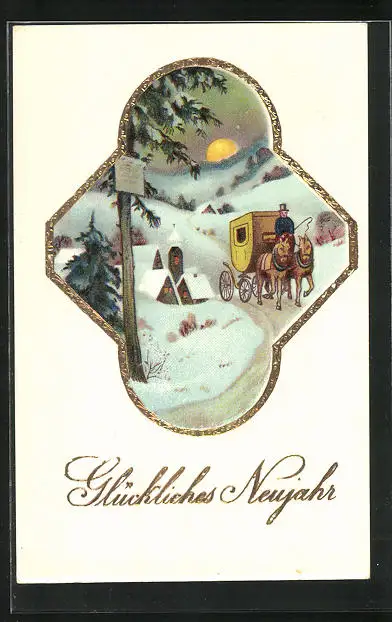 AK Postkutsche fährt ins Neue Jahr