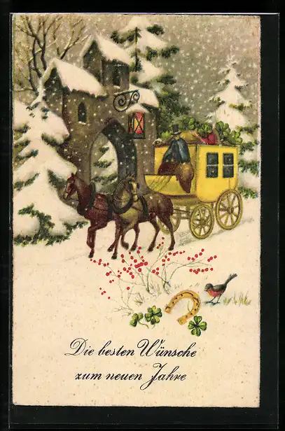 AK Postkutsche in Fahrt bei Schnee