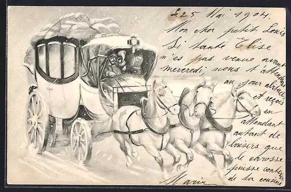 AK Postkutsche in winterlicher Landschaft