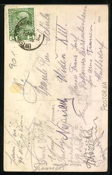 alte Ansichtskarte, gelaufen, Eckknicke li. unten u. re. oen, Bugspur li. oben, Stempelspur, guter Zustand