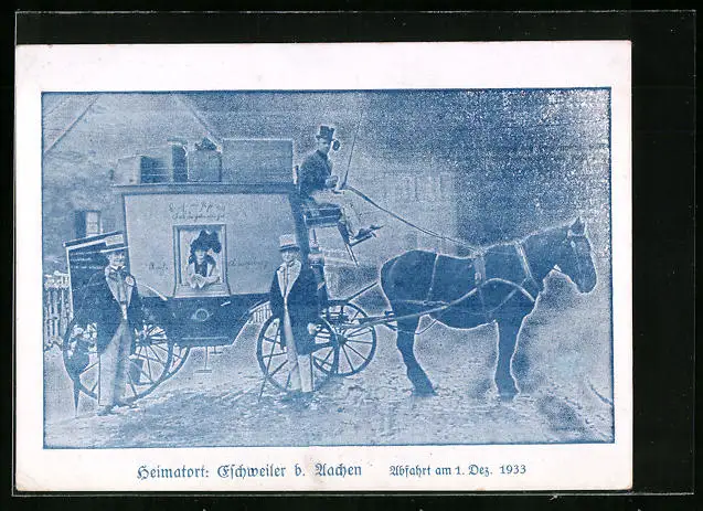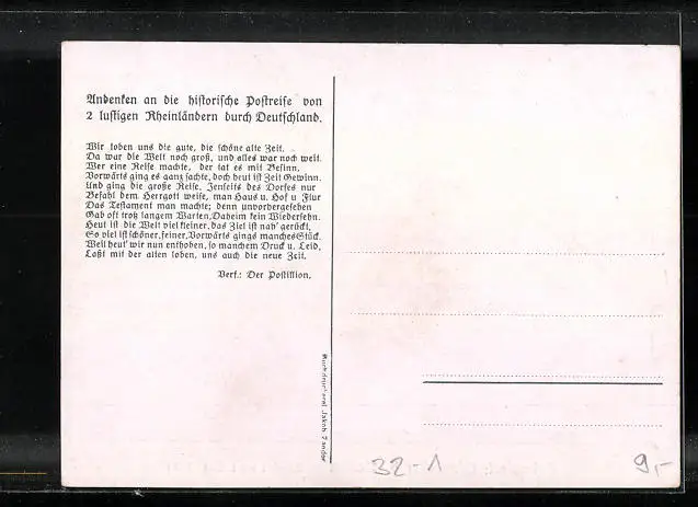 AK Postreise von zwei Rheinländern durch Deutschland 1933