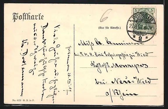 alte Ansichtskarte, gelaufen 1907, Eckknick unten li., guter Zustand