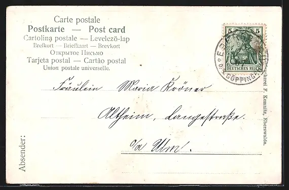 alte Ansichtskarte, gelaufen 1907, Eckknick re. unten, guter Zustand