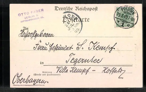 alte Ansichtskarte, gelaufen 1898, Stempelspur, guter Zustand