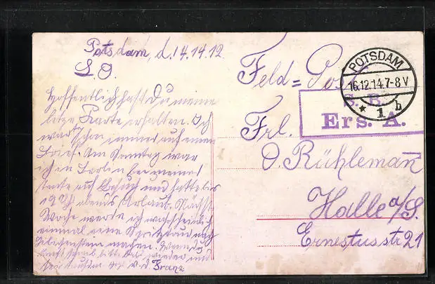 alte Ansichtskarte, gelaufen als Feldpost 1914, Eckknick unten rechts, guter Zustand