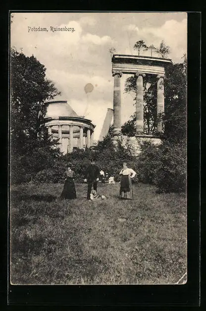 AK Potsdam, Partie am Ruinenberg mit Gruppe im Garten