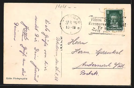 alte Ansichtskarte, gelaufen 1928, guter Zustand