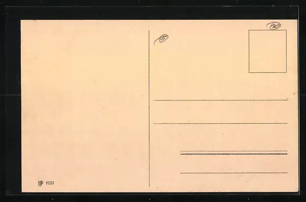 Personenbezogene Daten auf der Rückseite der Karte wurden durch blauen Textmarker unkenntlich gemacht. Die blauen Stellen sind auf die Vorderseite durchgeweicht und wirken sich negativ auf das Postkartenfoto aus