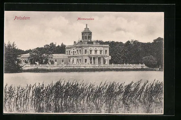 AK Potsdam, Wasserpartie mit Blick gegen Marmorpalais