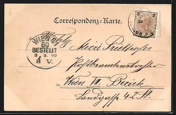 alte Ansichtskarte, gelaufen 1899, guter Zustand