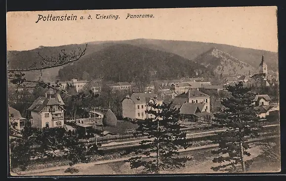 AK Pottenstein /Triesting, Ortsansicht mit Bergblick aus der Vogelschau