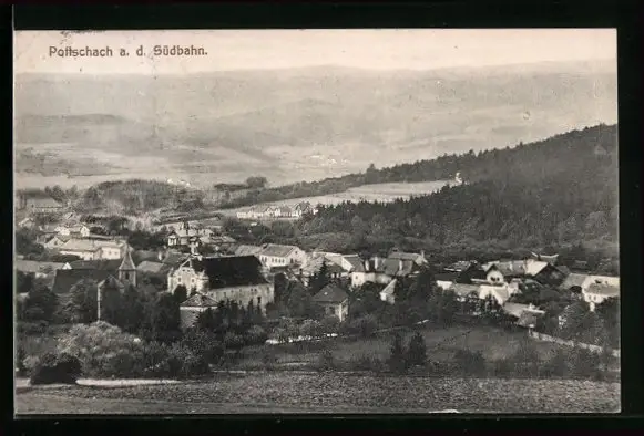 AK Pottschach a. d. Südbahn, Ortsansicht aus der Vogelschau