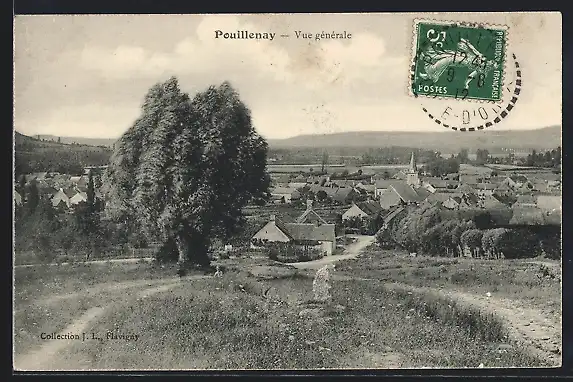 AK Pouillenay, vue générale du village avec un arbre au premier plan