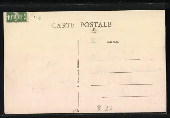 Personenbezogene Daten auf der Rückseite der Karte wurden durch blauen Textmarker unkenntlich gemacht. Die blauen Stellen sind auf die Vorderseite durchgeweicht und wirken sich negativ auf das Postkartenfoto aus