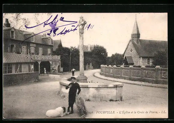 AK Pourville, L`Église et la Croix de Pierre