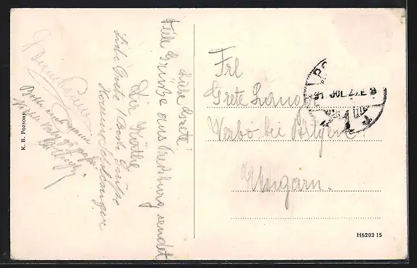 alte Ansichtskarte, gelaufen, Stempelspur, Briefmarke entfernt, rückseitig Oberflächenschaden, guter Zustand