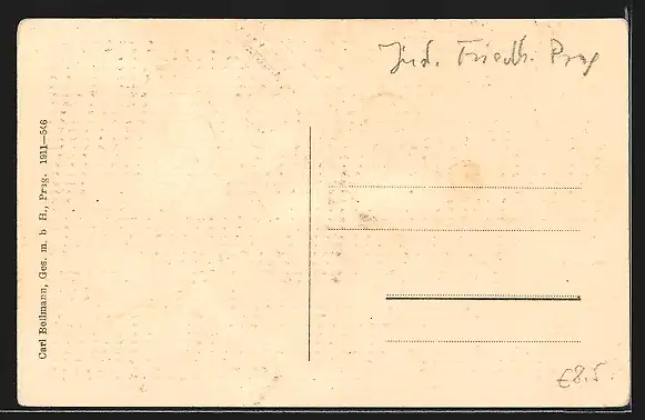 Personenbezogene Daten auf der Rückseite der Karte wurden durch blauen Textmarker unkenntlich gemacht. Die blauen Stellen sind auf die Vorderseite durchgeweicht und wirken sich negativ auf das Postkartenfoto aus