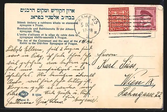 AK Prag, Bundeslade und Rabbinerssitz in der Atlneusynagoge
