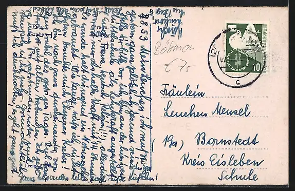 gelaufen 1953, Eckknicke unten und re. oben, guter Zustand