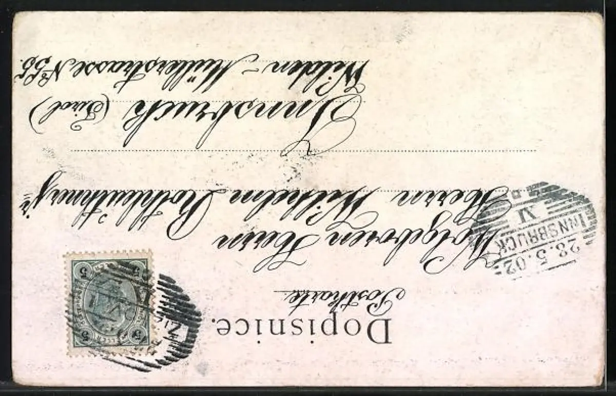 alte Ansichtskarte, gelaufen 1902, Stempelspur, Eckknicke oben, guter Zustand