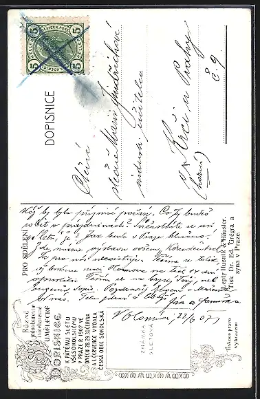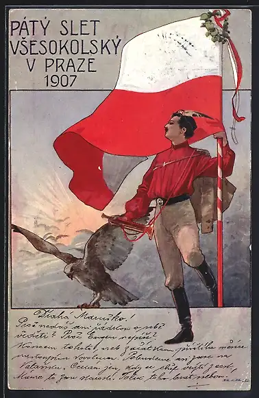 AK Prag, Páty slet Vsesokolsky v Praze 1907, Turner mit Fahne
