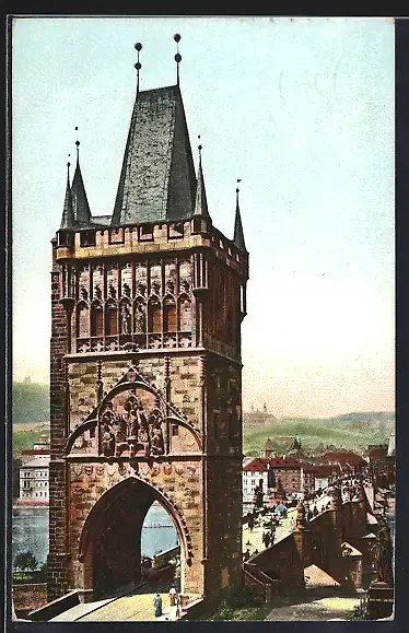 AK Prag / Praha, Karlsbrücke, Karluv most, Partie am Altstädter Brückenturm