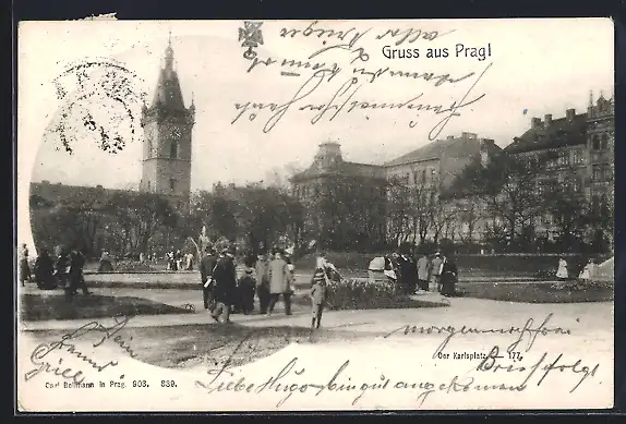 AK Prag / Praha, Passanten auf dem Karlsplatz