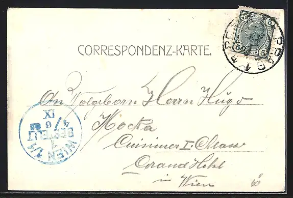 alte Ansichtskarte, gelaufen 1905, Stempelspur, guter Zustand