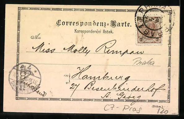 alte Ansichtskarte, gelaufen 1898, Stempelspur, guter Zustand