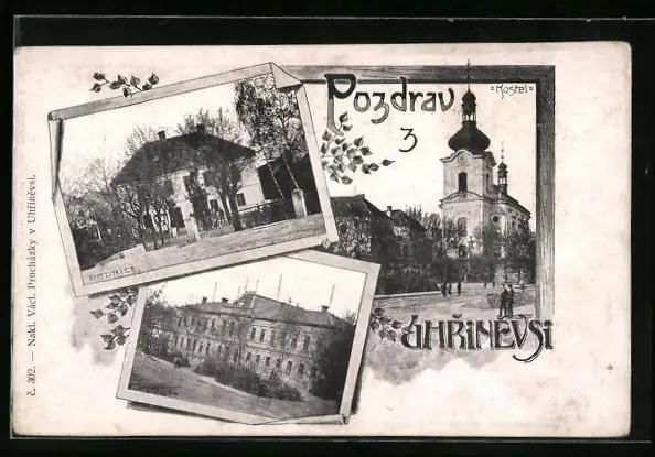 AK Prag / Praha-Uhrineves, Radnice, Skola, Kostel