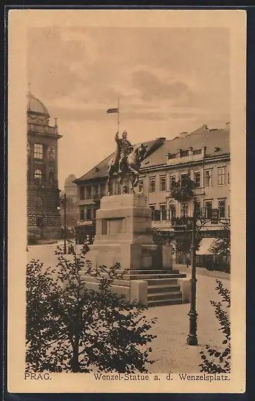 AK Prag / Praha, Wenzel-Statue a. d. Wenzelsplatz