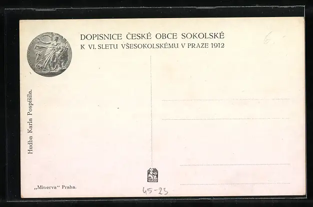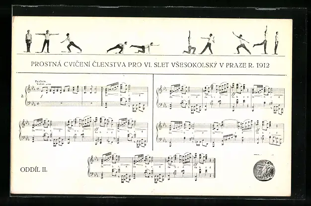AK Prag, Sokol 1912, Turner und Notenblatt