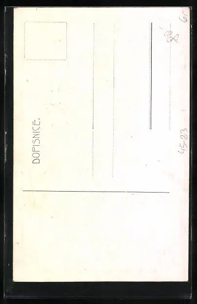 Personenbezogene Daten auf der Rückseite der Karte wurden durch blauen Textmarker unkenntlich gemacht. Die blauen Stellen sind auf die Vorderseite durchgeweicht und wirken sich negativ auf das Postkartenfoto aus