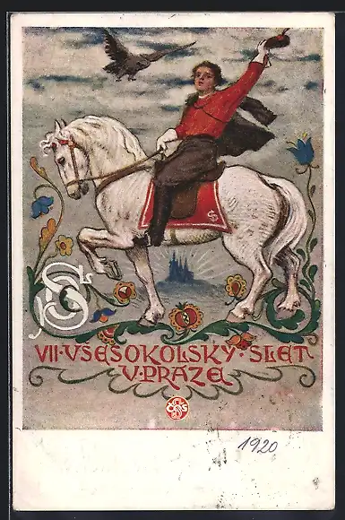 AK Prag, VII. Slet Vsesokolsky v Praze 1920, Turner auf weissem Ross