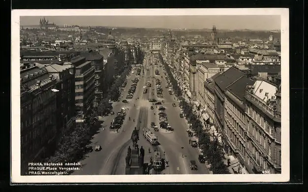 AK Prag, Wenzelsplatz mit Strassenbahn