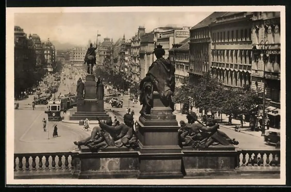 AK Prag, Wenzelsplatz mit Strassenbahn