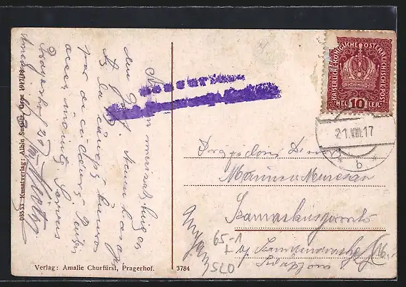 alte Ansichtskarte, gelaufen 1917, Eckknick li. oben, guter Zustand