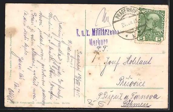 alte Ansichtskarte, gelaufen 1915, Eckknick li. unten, guter Zustand