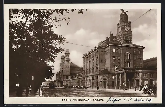AK Praha, Wilsonovo nadrazi, Strassenbahn