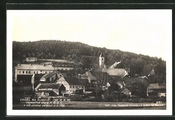 AK Prasily na Sumave, Ortsansicht mit Kirche