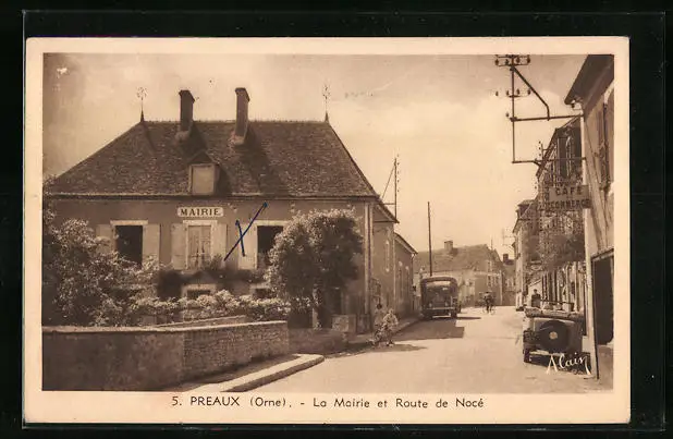 AK Preaux, La Mairie et Route de Nocé