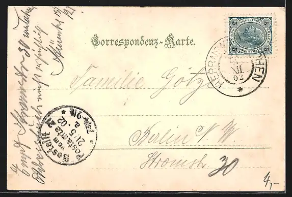 alte Ansichtskarte, gelaufen 1902, guter Zustand