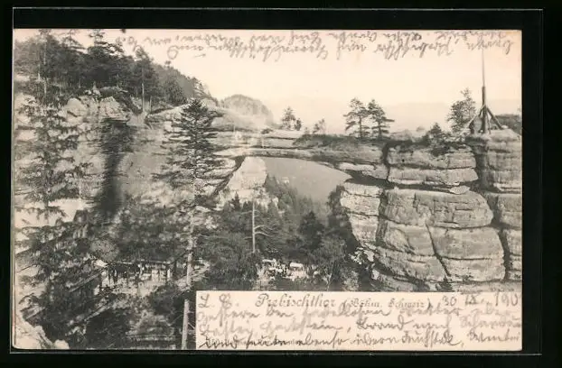 AK Prebischtor /Böhm. Schweiz, Blick Steinformation mit Tor
