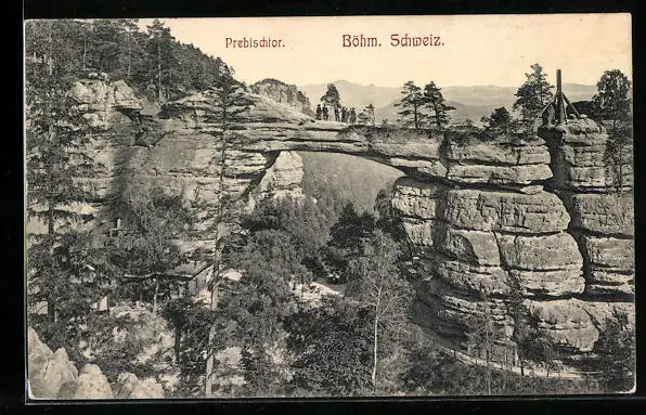 AK Prebischtor /Böhm. Schweiz, Blick auf Felstor mit Besuchern