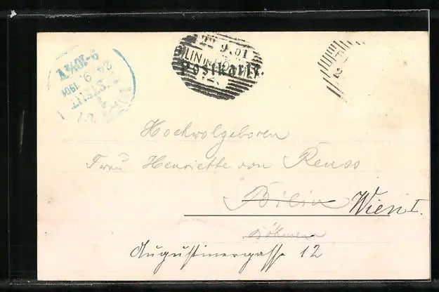 alte Ansichtskarte, gelaufen, Briefmarke entfernt, rückseitig Oberflächenschaden, guter Zustand