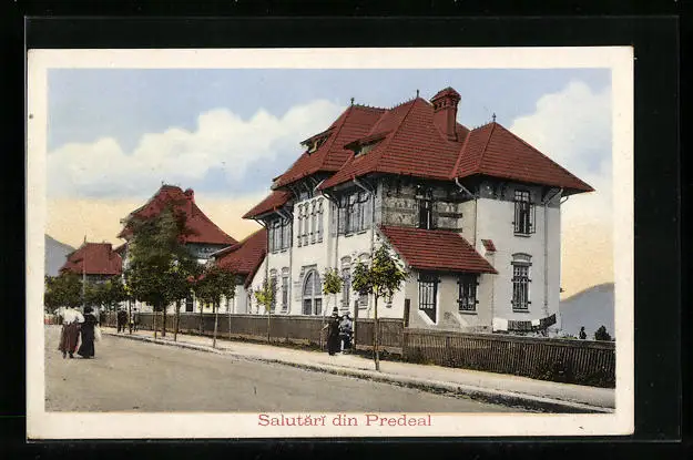 AK Predeal, Partie im Ort mit Wohnhäusern