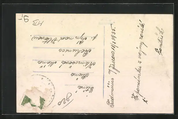 gelaufen 1935, Briefmarke tw. entfernt, Bugspur re. unten, guter Zustand
